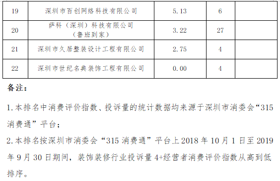 此外,本次公布的深圳市消委會裝飾裝修行業(yè)消費評價指數排行榜中,深圳新家生活科技服務有限公司(9.00)、深圳市百創(chuàng)網絡科技有限公司(5.13)和薩科(深圳)科技有限公司(魯班到家)(3.22)3家經營者未建立投訴處理便捷通道,投訴處理效率低于其他經營者,增加了消費者維權成本。