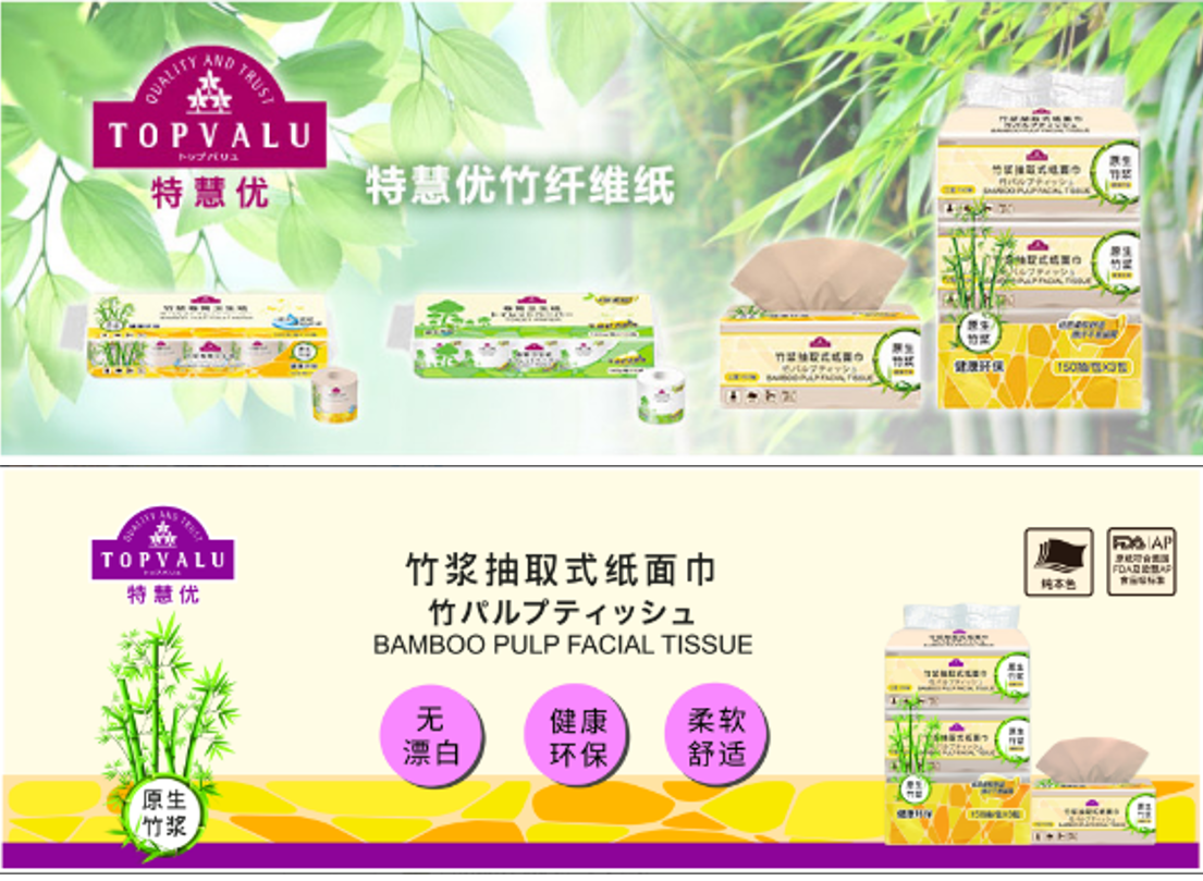永旺始終對環(huán)境保護高度關注,開發(fā)健康、環(huán)保的、讓顧客放心使用的商品一直是永旺的目標。正是出于這樣的考量,永旺自有品牌TOPVALU(特慧優(yōu))推出了竹漿抽取式紙面巾等系列的環(huán)境友好型商品。由于該商品做到了對環(huán)境無污染,對人體無危害,還獲得了“2018年中國零售自有品牌評選”的“綠色產品獎”。