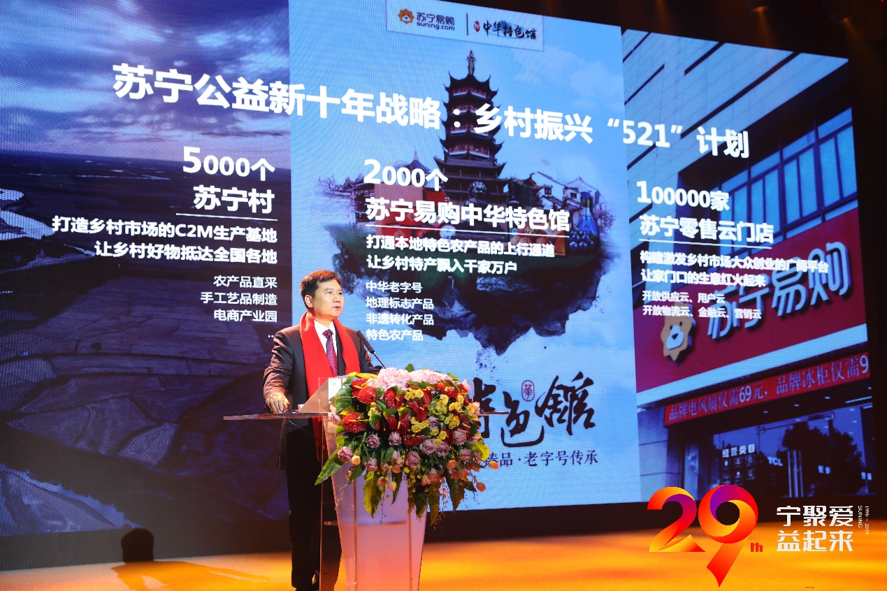 (圖:蘇寧控股集團(tuán)董事長(zhǎng)張近東發(fā)布鄉(xiāng)村振興“521計(jì)劃”)