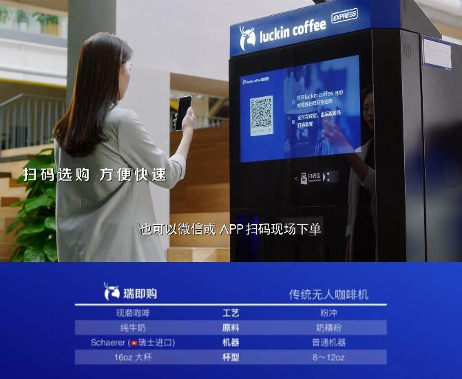 據(jù)了解,“瑞即購”采用瑞士Schaerer咖啡機(jī)、WBC大師精心拼配的IIAC金獎(jiǎng)咖啡豆和其他優(yōu)質(zhì)原料,產(chǎn)品品質(zhì)和口味達(dá)到與瑞幸咖啡門店相同標(biāo)準(zhǔn),實(shí)現(xiàn)“大師咖啡,更近一步”。消費(fèi)者除了可以通過瑞幸咖啡App提前下單外,也可以現(xiàn)場(chǎng)掃碼下單/刷臉支付等。瑞即購還有特有的壓蓋技術(shù),省卻了讓消費(fèi)者自己蓋杯蓋的瑣碎步驟。同時(shí),Luckin Coffee 的優(yōu)惠券通用,消費(fèi)者能在瑞即購上使用瑞幸咖啡的優(yōu)惠券,享受與門店同樣的優(yōu)惠。