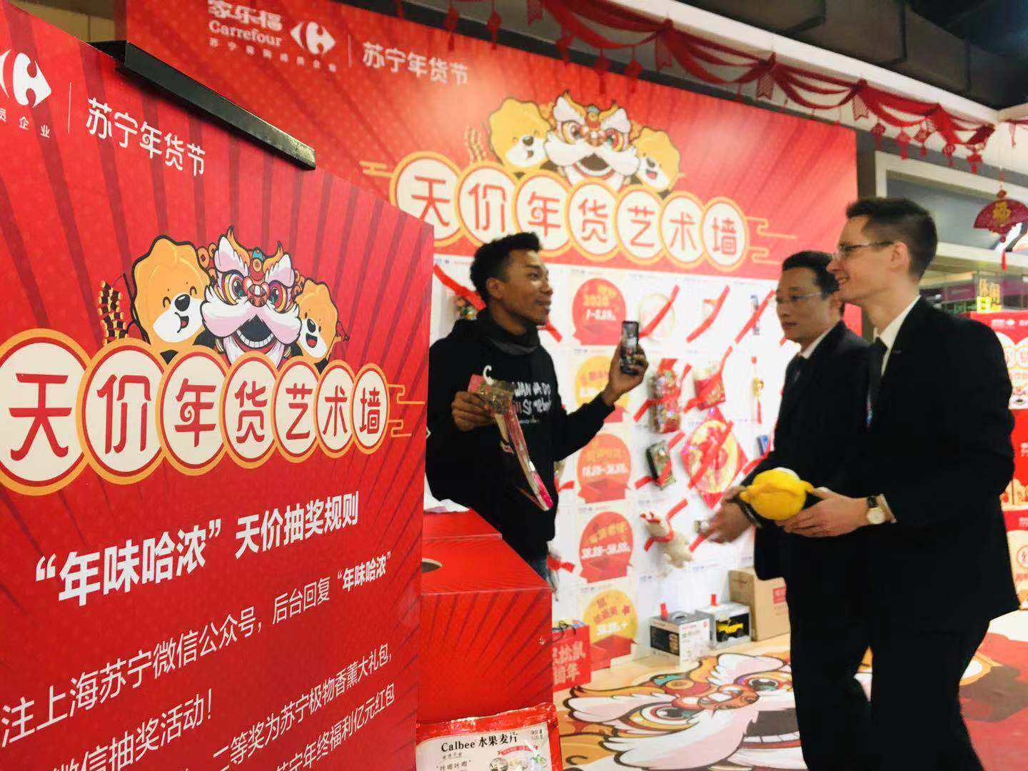 1月10日,是蘇寧收購家樂福的第181天,也正逢上海家樂福徐涇店也重裝開業(yè)的日子。當(dāng)天,在家樂福中國的商品副總裁馬邱與網(wǎng)紅藍(lán)鯨杰瑞的帶領(lǐng)下,透過直播鏡頭,消費者看到了家樂福店中豐富多彩的年貨產(chǎn)品。