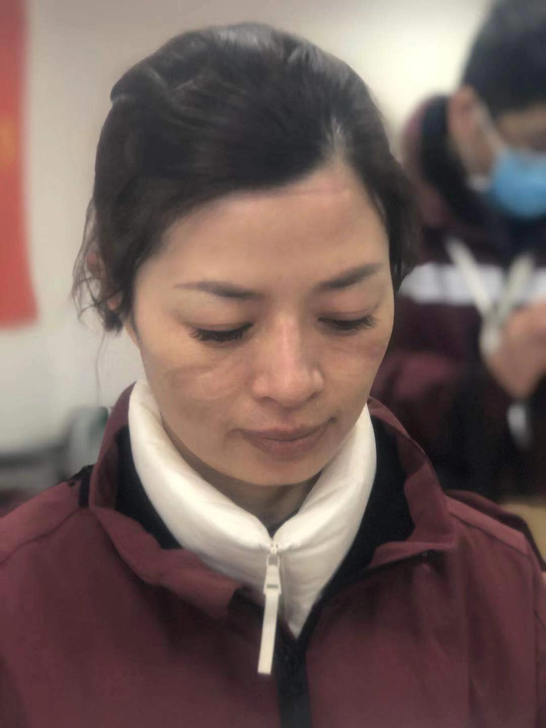 袁衛(wèi)文說,妻子在前線工作強度很大,幾班倒,有晚上10點的班,也有凌晨3點的班。一次,妻子下班后給他發(fā)來摘掉口罩的照片,臉上的一道道勒痕,讓袁衛(wèi)文看得十分心疼。他只能默默祈禱,疫情快點過去,妻子平安歸來。