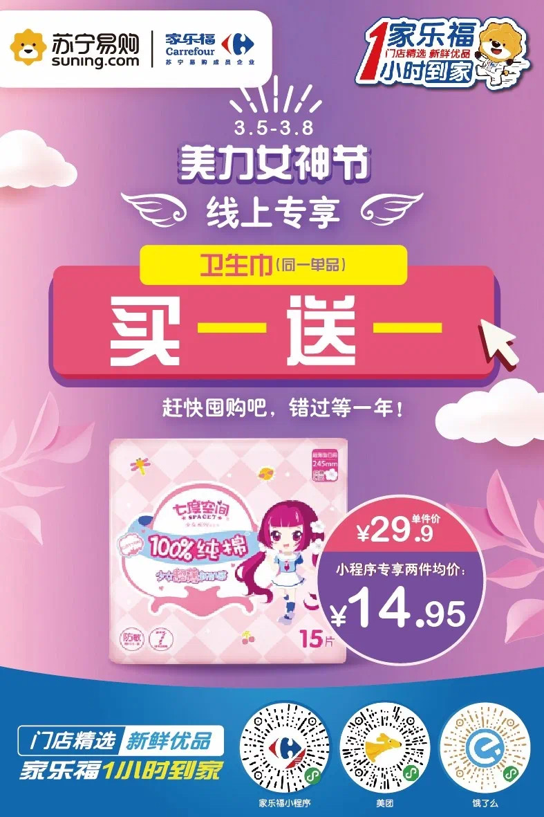 作為女神每個(gè)月都必備的剛需品,衛(wèi)生巾(同一單品)買(mǎi)一送一這種大便宜,必須撿!