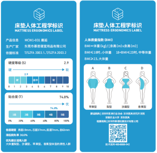 3月15日,京東品質(zhì)認證與深圳賽德檢測聯(lián)合發(fā)布的“健康睡眠新標準”京東直播上,首次發(fā)布“床墊人體工程學標識”,直播過程中,檢測專家團結合人體質(zhì)量指數(shù)BMI和人體體型等,科普床墊選購方法,讓消費者在了解自身身體情況基礎上,選購適合自身的床墊。
