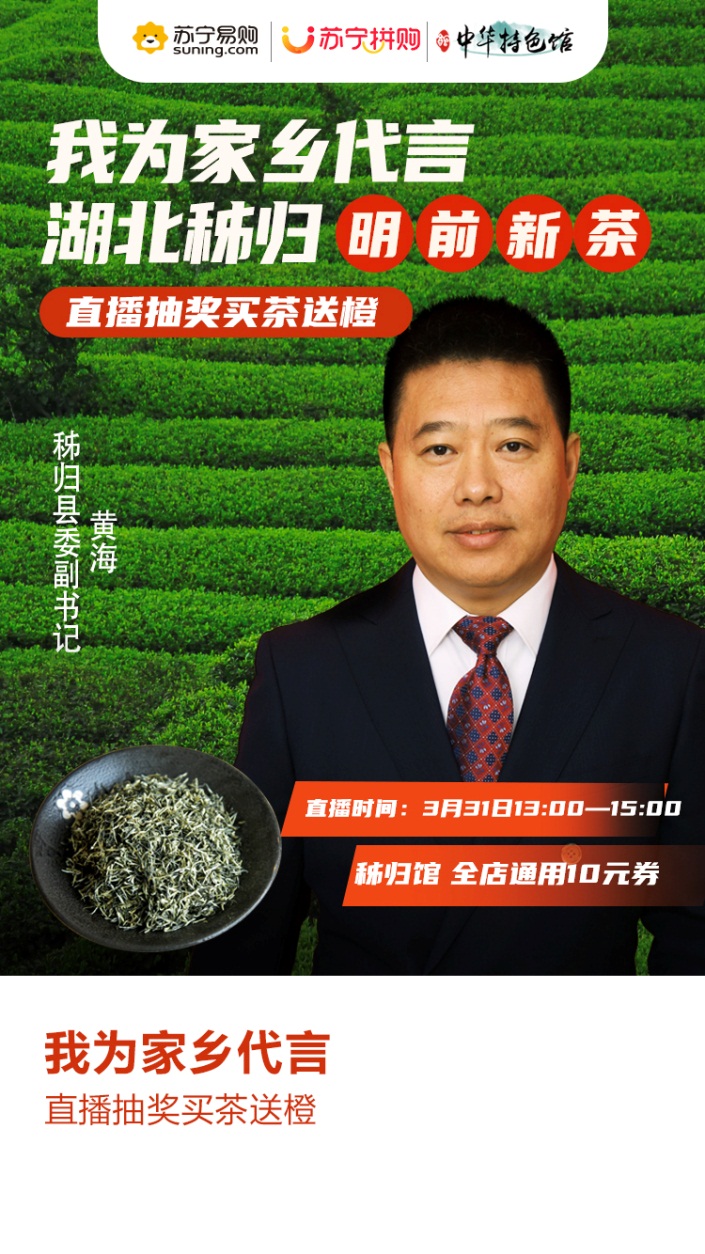 縣長(zhǎng)直播帶貨已成風(fēng)潮,其中誕生了不少網(wǎng)紅案例。3月31日,蘇寧拼購(gòu)將邀請(qǐng)湖北秭歸縣縣委副書記黃海亮相直播,為全網(wǎng)消費(fèi)者帶來(lái)地道的秭歸農(nóng)產(chǎn)品。