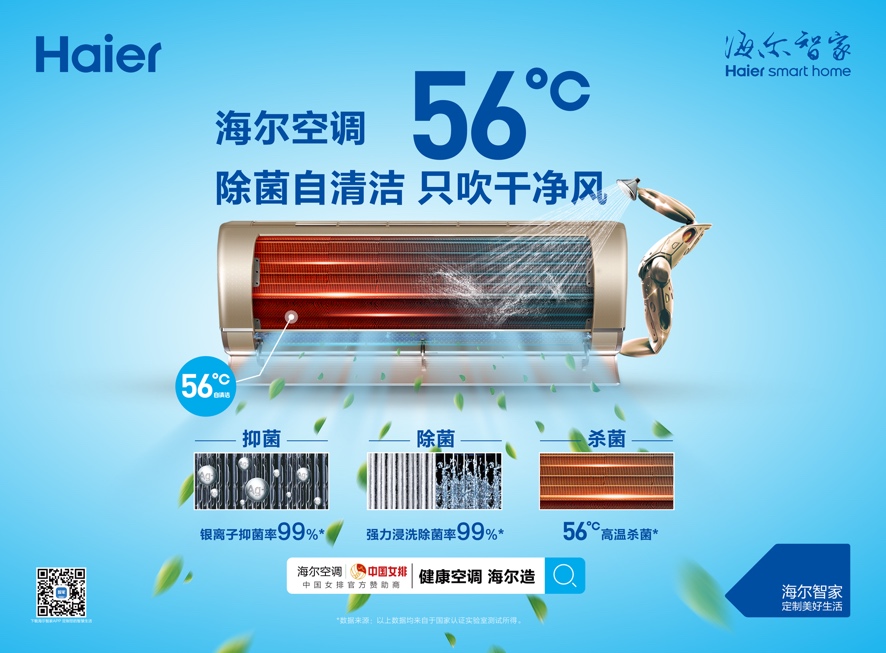 不僅如此,針對空調(diào)臟、清洗難的問題,海爾還升級了56度C除菌自清潔空調(diào)。當(dāng)空調(diào)開啟自清潔后,蒸發(fā)器溫度可達(dá)56℃以上,達(dá)到除菌除塵的效果。
