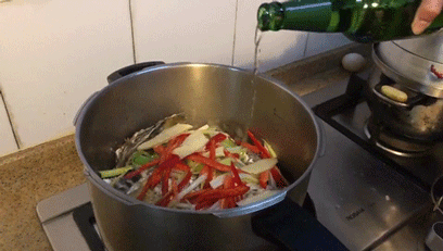 每個生蠔手工挑選,新鮮肥美!沖洗干凈,放入高壓鍋,放大蔥絲、姜片、紅辣椒絲,倒入啤酒,開火!隔酒蒸,上氣后,蒸30秒-1分鐘,就可以開鍋啦!