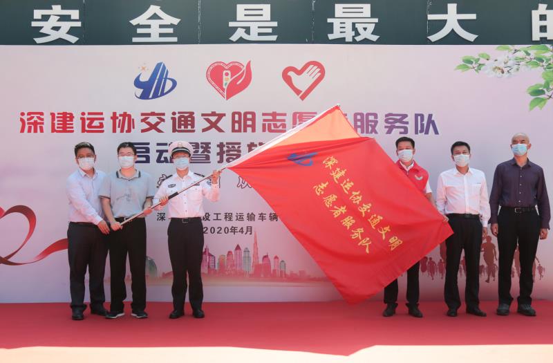 見圳客戶端·深圳新聞網(wǎng)2020年4月29日訊 為創(chuàng)建文明交通環(huán)境,引導(dǎo)行業(yè)人員自覺、主動參與志愿服務(wù)活動,用實(shí)際行動“服務(wù)社會,傳播文明”,昨日,深圳市建設(shè)工程運(yùn)輸車輛協(xié)會在福田區(qū)交通警察局特勤大隊(duì)舉行了“深建運(yùn)協(xié)交通文明志愿者服務(wù)隊(duì)啟動暨授旗儀式”。啟動儀式由協(xié)會黨委副書記兼紀(jì)委書記嚴(yán)勝強(qiáng)主持。深圳市交通運(yùn)輸局、公安交警局、住房和建設(shè)局、社會組織管理局、義工聯(lián)合會領(lǐng)導(dǎo)和協(xié)會黨委領(lǐng)導(dǎo)班子、各黨支部書記、副會長、監(jiān)事長、副監(jiān)事長以及行業(yè)駕駛員代表等共計(jì)50余人出席了此次活動。