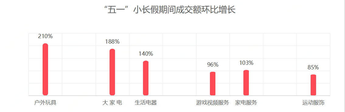 京東大數(shù)據(jù)顯示,“五一”小長(zhǎng)假期間,線上消費(fèi)成交額比2019年同期增長(zhǎng)45%。農(nóng)貨、國(guó)貨成為主要的消費(fèi)亮點(diǎn),表達(dá)了人們熱愛(ài)生活、親近自然、營(yíng)養(yǎng)健康的消費(fèi)態(tài)度。