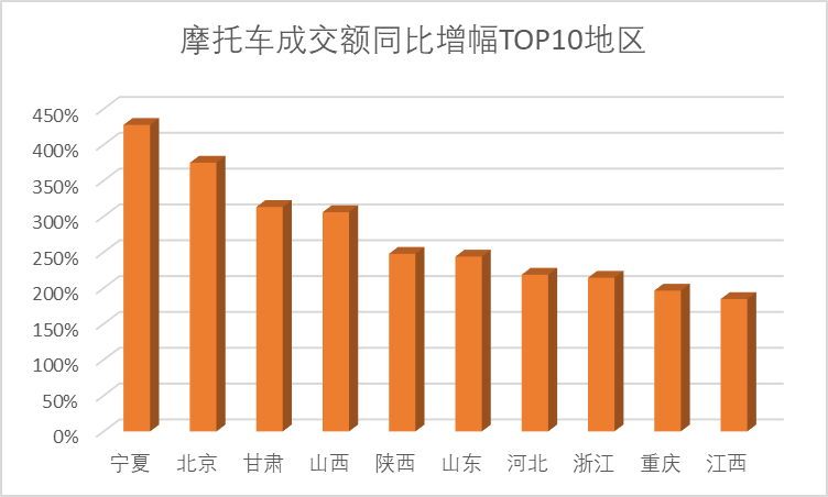 (摩托車成交額同比增幅TOP10地區(qū))