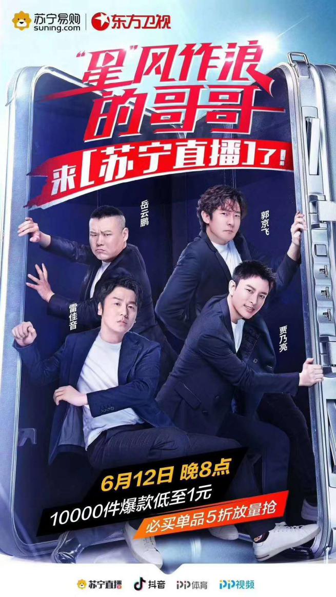 原來,蘇寧將在6月12日晚8點開啟以“星”風作浪的哥哥為主題的直播活動,共計3個小時。正所謂娛樂購物兩不誤,極限挑戰(zhàn)將陣容搬到了直播間,4位明星搭檔主持,帶領用戶感受全方位的品質(zhì)化購物,煥新精彩生活。