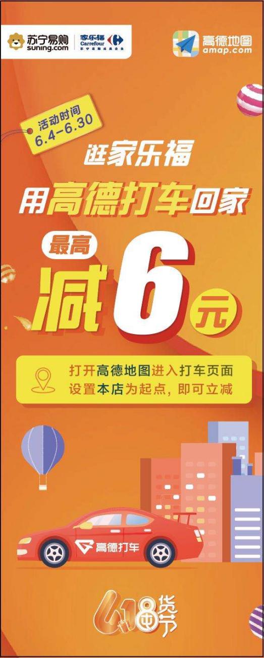 晚上8點(diǎn)40分,下班后趕來購物的王小姐提著滿滿三大袋戰(zhàn)利品準(zhǔn)備回家。她拿出手機(jī)打開高德地圖APP,選擇“家樂福南方店”為起點(diǎn),預(yù)估車費(fèi)顯示隨機(jī)立減最高6元,同時領(lǐng)取了家樂福138元線上專享新人禮包。