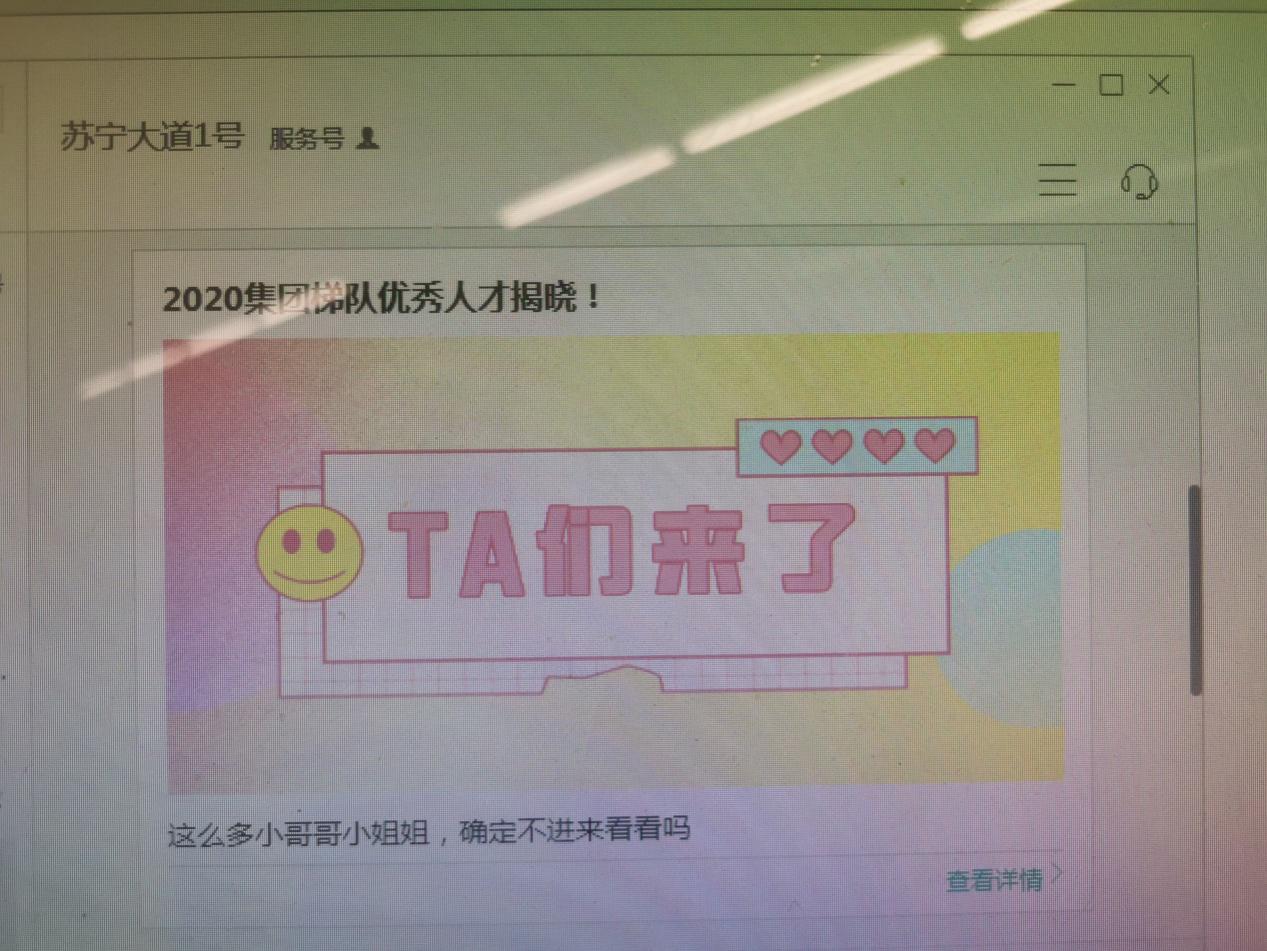 近期,有網(wǎng)友透露,蘇寧在內(nèi)部發(fā)文公布了2020年度集團(tuán)梯隊(duì)選拔的優(yōu)秀人才代表,通過(guò)選入管理干部梯隊(duì),逐層擔(dān)綱重任。