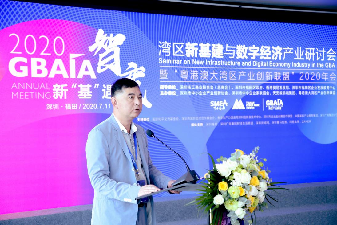 2020年7月11日,在深圳市工商聯(lián)合會(huì)(總商會(huì))、深圳市福田區(qū)政府、香港貿(mào)易發(fā)展局的指導(dǎo)下,由深圳市中小企業(yè)產(chǎn)業(yè)創(chuàng)新協(xié)會(huì)、深圳市中小企業(yè)家聯(lián)誼會(huì)、天安數(shù)碼城集團(tuán)、粵港澳大灣區(qū)產(chǎn)業(yè)創(chuàng)新聯(lián)盟聯(lián)合主辦的“灣區(qū)新基建與數(shù)字經(jīng)濟(jì)產(chǎn)業(yè)研討會(huì)”在深圳國(guó)際創(chuàng)新中心成功舉行。