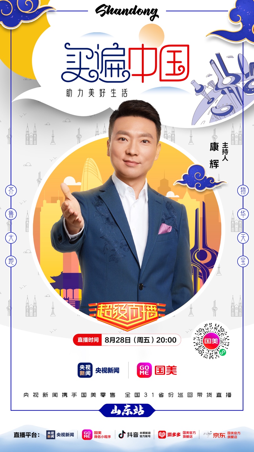8月28日晚20點,記得鎖定國美微信小程序、拼多多國美官方旗艦店、京東國美官方旗艦店,及央視新聞的客戶端、抖音號,“買遍中國”山東站直播間,一起來看“央視大 boy”康輝帶貨狂奔?。ǔ\娖剑?/p>