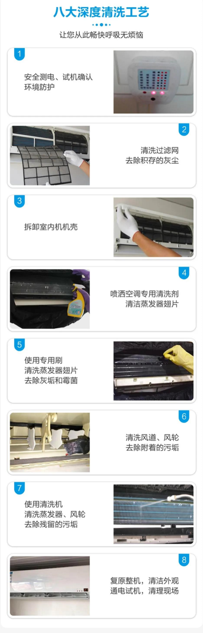 “家里最老的那臺(tái)空調(diào)應(yīng)該是09年買的,一直也沒有清洗過”莊老師介紹說。和用戶平常在家做的沖洗過濾網(wǎng)的簡(jiǎn)單清潔不同,海爾空調(diào)服務(wù)工程師對(duì)空調(diào)進(jìn)行深度清洗。通過專業(yè)空調(diào)清洗劑以及高壓水槍進(jìn)行"一臺(tái)空調(diào)洗三遍"深度清洗服務(wù):拆洗一遍,沖洗一遍,高溫蒸汽除菌一遍,并對(duì)空調(diào)用電進(jìn)行安全檢測(cè),全方位呵護(hù)用戶及家人的健康呼吸。
