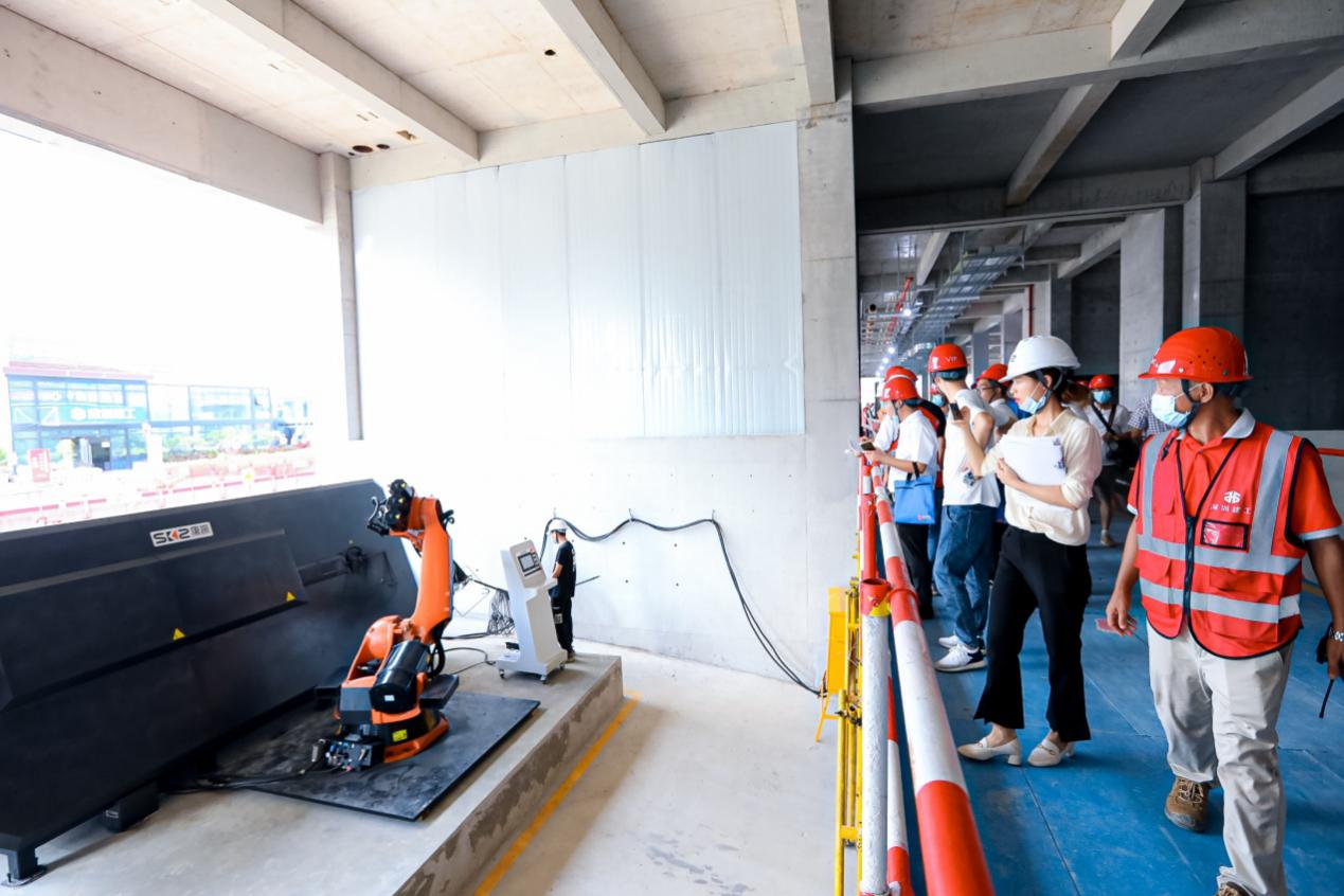 此次觀摩由“三中心一展區(qū)”構(gòu)成,即創(chuàng)魯班獎優(yōu)秀工藝展示中心、科技創(chuàng)新中心、智能指揮中心和建筑內(nèi)展區(qū)。觀摩主要亮點有黨建引領(lǐng)高質(zhì)量發(fā)展、質(zhì)量管理體系與機(jī)制(參建方質(zhì)量管理體系、6σ管理、質(zhì)量管理標(biāo)準(zhǔn)化、精細(xì)化)、創(chuàng)魯班獎優(yōu)秀工藝展示、市工務(wù)署優(yōu)秀工藝工法展示、工程質(zhì)量常見問題治理(樣板引路)、智能建造推動質(zhì)量提升(科技創(chuàng)新展示、抹灰機(jī)器人、實測實量機(jī)器人等智能建造設(shè)備實操演示、BIM技術(shù))、智慧工地展示(“e工務(wù)”APP應(yīng)用與推廣、智慧工地、智能指揮等)、6S管理等,通過現(xiàn)場講解員的介紹,使觀摩人員更加清晰且深入的了解相關(guān)內(nèi)容。