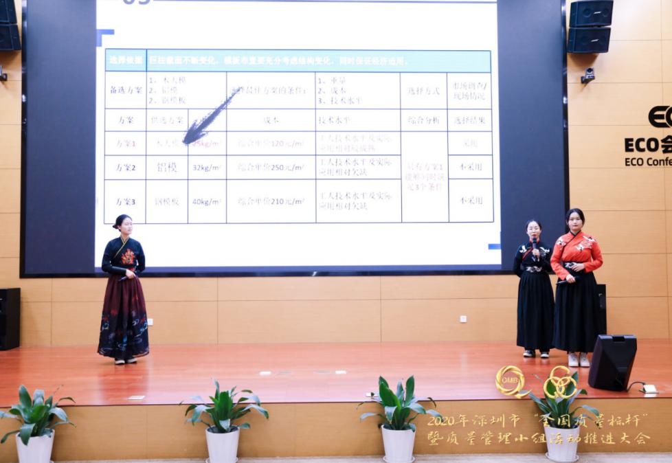 現(xiàn)場(chǎng),獲得深圳市第十屆職工技術(shù)創(chuàng)新運(yùn)動(dòng)會(huì)暨2020年深圳技能大賽——質(zhì)量管理小組活動(dòng)技能競(jìng)賽金獎(jiǎng)的小組深圳市中興通訊股份有限公司低空飛行QC小組、中國(guó)華西企業(yè)有限公司冠澤金融中心QC小組為大家作了精彩發(fā)表展示。由市總工會(huì)基層組織建設(shè)和經(jīng)濟(jì)工作部二級(jí)調(diào)研員張麗英宣讀“深圳市第十屆職工技術(shù)創(chuàng)新運(yùn)動(dòng)會(huì)暨2020年深圳技能大賽——質(zhì)量管理小組活動(dòng)技能競(jìng)賽”結(jié)果的通報(bào),并為16個(gè)金獎(jiǎng)小組進(jìn)行授牌,市政協(xié)常委、市質(zhì)量協(xié)會(huì)執(zhí)行會(huì)長(zhǎng)李榕,市科協(xié)機(jī)關(guān)黨委副書記、紀(jì)委書記劉衛(wèi)東,市婦聯(lián)組聯(lián)發(fā)展部二級(jí)調(diào)研員嚴(yán)俊勇,工商聯(lián)會(huì)員部部長(zhǎng)劉傳分別為32個(gè)銀獎(jiǎng)和32個(gè)銅獎(jiǎng)小組進(jìn)行授牌。