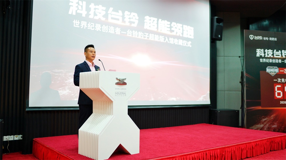 據了解,臺鈴和深圳市工業(yè)展覽館的淵源由來已久,早在2014年,臺鈴就在這里召開了“4G鋰電車新技術”新聞發(fā)布會,展示了當時臺鈴最新的研發(fā)成果;2017年,臺鈴“紅點獎”作品C-One、“紅帆獎”作品Coortina、自由戰(zhàn)士進駐展覽館供市民參觀;2018年,臺鈴米拉挑戰(zhàn)賽也在這里完美收官。“今天,我們又站在一起,迎來世界紀錄創(chuàng)造者——臺鈴豹子超能版進駐工展館這一無比榮耀時刻,祝賀臺鈴!”潘文峰副館長在收藏儀式上說道。