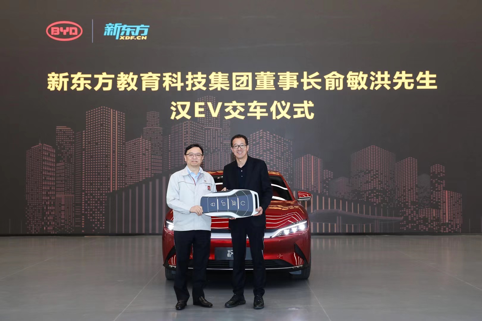 近日,新東方教育科技集團(tuán)董事長(zhǎng)俞敏洪來訪比亞迪深圳總部。期間,比亞迪集團(tuán)董事長(zhǎng)兼總裁王傳福向俞敏洪闡述了比亞迪的發(fā)展歷程以及布局規(guī)劃,并向他介紹了比亞迪全球超安全智能新能源旗艦轎車——漢,俞敏洪看到漢的外觀之后連連稱贊,并試駕了漢 EV。