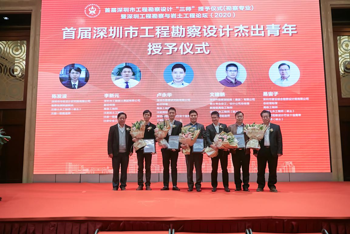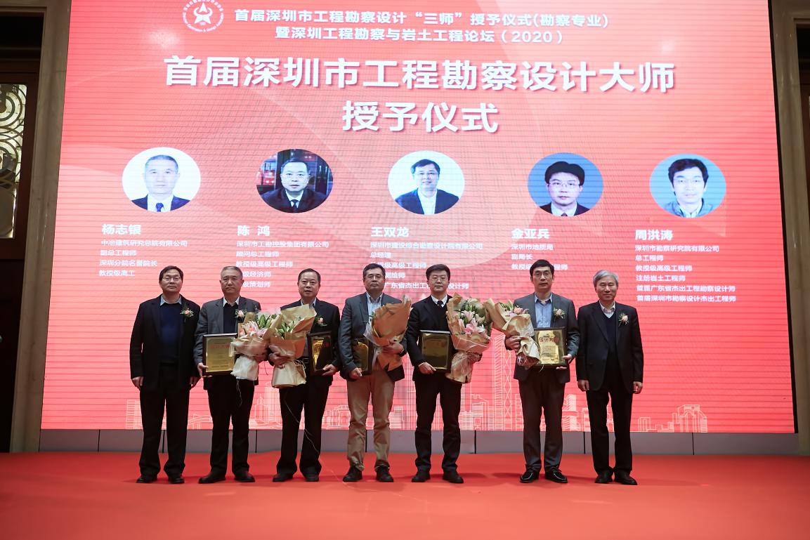 “三師”認(rèn)定活動(dòng)最終評選出123位大師,而勘察領(lǐng)域中共評出7位工程勘察設(shè)計(jì)功勛大師、5位工程勘察設(shè)計(jì)大師、5位杰出青年工程勘察設(shè)計(jì)師。深圳市勘察研究院在三獎(jiǎng)中均有斬獲,原總工程師康鎮(zhèn)江被評為“深圳市工程勘察設(shè)計(jì)功勛大師”;總工程師周洪濤被評為“深圳市工程勘察設(shè)計(jì)大師”;副總經(jīng)理盧永華被評為“深圳市杰出青年工程勘察設(shè)計(jì)師”。