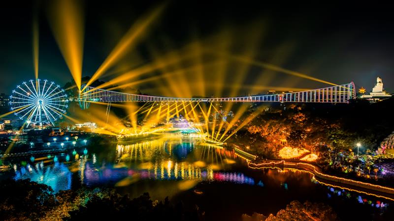 2021年是農(nóng)歷丑牛年,隱賢山莊特別推出了“與牛共舞”和小丑互動節(jié)目,景區(qū)選取了傳統(tǒng)文化里具有勤勞實干品質(zhì)的“牛”為開年使者,讓大家與可愛的萌牛共舞,再配上幽默搞笑的小丑與游客互動,貼合“丑?!钡男履曛黝}?!澳Щ每兹腹取笔且钥兹腹鹊亩嗖熟o謐的環(huán)境為背景,由國內(nèi)知名魔術(shù)師現(xiàn)場表演近景魔術(shù),比熒幕觀賞更有逼真和神秘的效果?!帮L情加勒比”將在加勒比民族舞臺上演云南佤族特色舞蹈,讓東莞游客不出遠門就能體驗到異域風情?!拌仓埂笔窃陔[賢山莊的網(wǎng)紅橋——3D玻璃橋演繹瀑布燈光秀,空中七彩燈光閃耀,與隱賢湖水交相輝映,猶如置身唯美的天上街市。“鵲橋浪漫”是隱賢山莊專門為有情人預(yù)備的一份節(jié)日禮物,在喜鵲的簇擁和音樂的伴奏下,他們從鵲橋的兩端緩緩走向?qū)Ψ剑瑢⒅腥A民族流傳千年的牛女相會的愛情故事由神話變成現(xiàn)實。