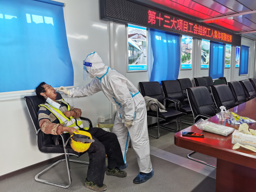 見圳客戶端·深圳新聞網(wǎng)2021年2月4日訊 臨近春節(jié),為方便返鄉(xiāng)人員持有效核酸證明回家,消除留守工地人員的顧慮,中建一局華北公司項(xiàng)目部組織“歸鄉(xiāng)通行證”活動(dòng),項(xiàng)目部邀請(qǐng)核酸檢測(cè)機(jī)構(gòu)進(jìn)工地,上門為項(xiàng)目管理人員和工友做核酸檢測(cè)。
