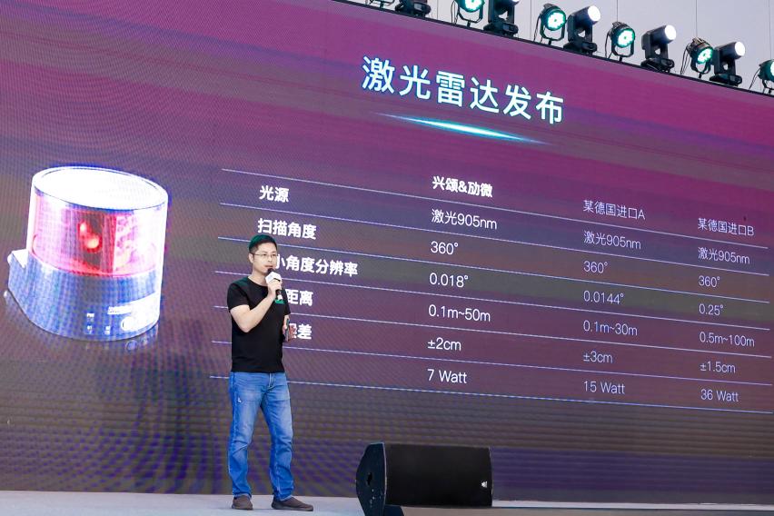 接下來進(jìn)入到發(fā)布會(huì)重磅內(nèi)容環(huán)節(jié),首先,勱微機(jī)器人CEO陳文成在會(huì)上宣布了勱微聯(lián)合興頌研發(fā)的激光雷達(dá),這款激光雷達(dá)具有優(yōu)異的性能,即使在5%反射率的環(huán)境下,依然可以有50m的檢測(cè)距離,同時(shí)還具備非常穩(wěn)定的持續(xù)輸出,且精度保持在±2mm,較同行的±10mm更精準(zhǔn)。