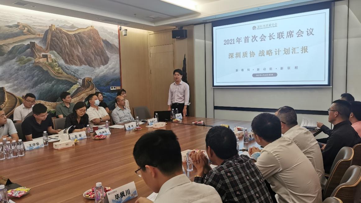 見圳客戶端·深圳新聞網(wǎng)2021年4月22日訊 近日,深圳市質(zhì)量協(xié)會(huì)2021年首次會(huì)長聯(lián)席會(huì)議在市質(zhì)協(xié)副會(huì)長單位銀廣廈集團(tuán)有限公司成功舉辦。深圳市人民政府原副市長陳彪,原廣東省政府參事、原深圳出入境檢驗(yàn)檢疫局局長、市決咨委——市先行示范區(qū)專家劉勝利,深圳市質(zhì)量協(xié)會(huì)會(huì)長、深圳航盛電子有限公司董事長楊洪以及各在深副會(huì)長出席了本次會(huì)議。