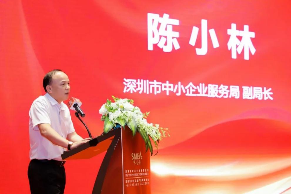 深圳市中小企業(yè)服務(wù)局副局長陳小林(左六)、