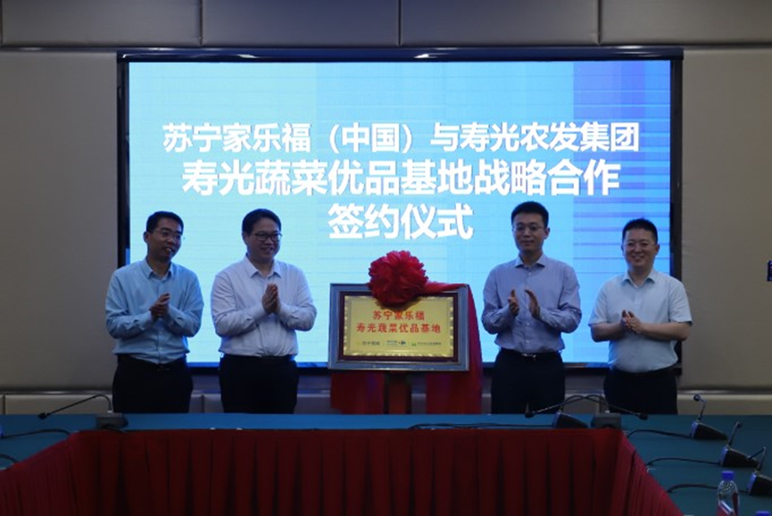 (圖:蘇寧家樂(lè)福壽光蔬菜優(yōu)品基地戰(zhàn)略合作簽約儀式)