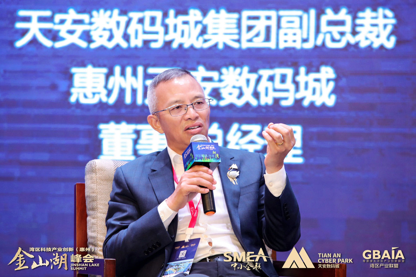 “‘雙區(qū)’建設(shè)是國家領(lǐng)導(dǎo)人和黨中央部署的重大國家戰(zhàn)略,作為粵港澳大灣區(qū)重要節(jié)點(diǎn)和深圳都市圈重要成員,全力支持、積極融入既是惠州鮮明的政治態(tài)度,也是惠州發(fā)展的必然抉擇。相信在惠州市及各級(jí)政府部門支持下,深圳市中小企業(yè)產(chǎn)業(yè)創(chuàng)新協(xié)會(huì)、天安數(shù)碼城集團(tuán)強(qiáng)強(qiáng)攜手,與各方合作伙伴共同努力,通過每年一屆的“灣區(qū)產(chǎn)業(yè)創(chuàng)新(惠州)金山湖峰會(huì)”深入落實(shí)創(chuàng)新驅(qū)動(dòng)發(fā)展戰(zhàn)略,匯聚粵港澳大灣區(qū)產(chǎn)業(yè)創(chuàng)新資源,深化粵港澳創(chuàng)新合作,助力惠州與灣區(qū)城市間的產(chǎn)業(yè)創(chuàng)新與協(xié)同發(fā)展。