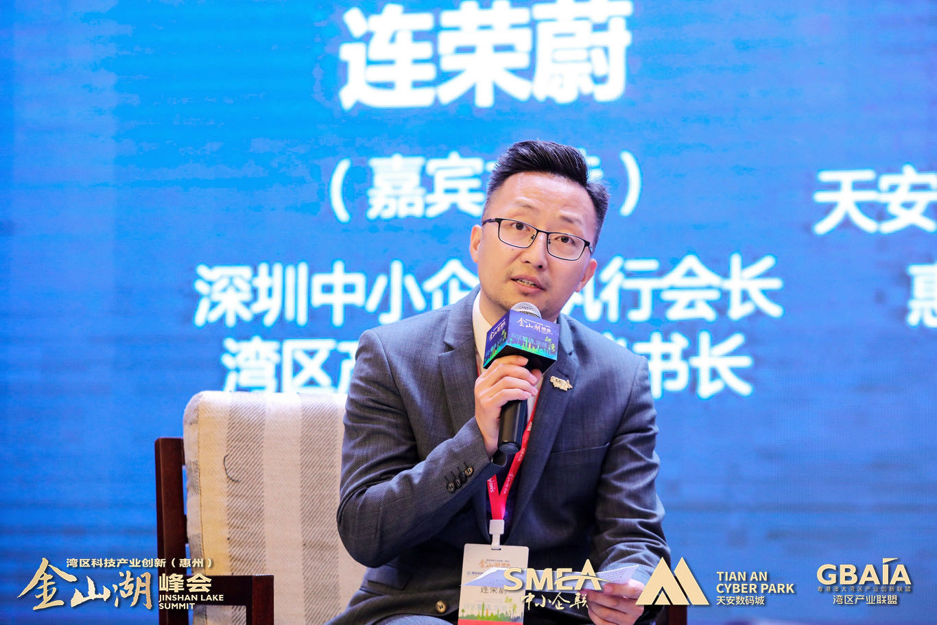 深圳中小企聯(lián)執(zhí)行會(huì)長、灣區(qū)產(chǎn)業(yè)聯(lián)盟秘書長連榮蔚主持論壇環(huán)節(jié)
