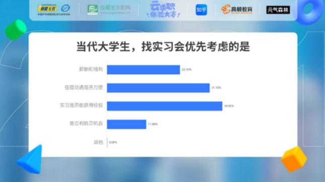 大家在尋找實(shí)習(xí)的過程中,會(huì)優(yōu)先考慮的三個(gè)因素分別是實(shí)習(xí)是否能獲得經(jīng)驗(yàn)、住宿交通是否方便、薪酬和福利。