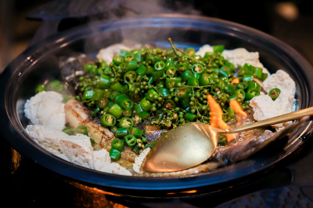 除了視覺(jué)感官外,探魚(yú)全新lab店的產(chǎn)品完全顛覆了探魚(yú)以往的產(chǎn)品結(jié)構(gòu)和產(chǎn)品體驗(yàn),所有的產(chǎn)品都以“極致釋放”為準(zhǔn)則,涼菜更冰爽,熱菜更火熱,更高的顏值、味道更加的讓人印象深刻,有好玩、驚喜的感覺(jué)。探魚(yú)的經(jīng)典產(chǎn)品“鮮青椒烤魚(yú)”也在lab店有口味上和形式上的升級(jí),味道上加重了核心的“爽麻”的口感,上菜形式也增加了添酒增香、點(diǎn)火炙烤等充滿(mǎn)儀式感的內(nèi)容。提高菜品品質(zhì)的同時(shí),也使顧客擁有了更別致的用餐體驗(yàn)。