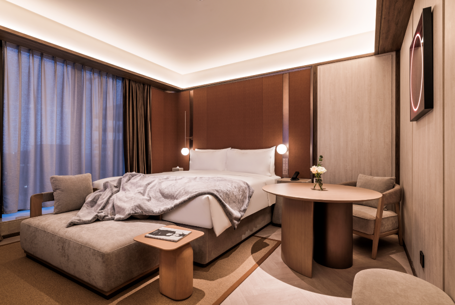 在公區(qū)設(shè)計上,“新水晶”回歸本質(zhì)與純粹,采用胡桃木、古銅、玻璃元素,打造更具質(zhì)感更具高級感的空間氛圍。大堂配備的威士忌酒廊,優(yōu)雅中又帶著商務(wù),整體提升水晶品質(zhì)特質(zhì)。客房內(nèi)部,油畫般的質(zhì)感與流暢典雅的線條相結(jié)合,干凈而明亮,純粹的質(zhì)地、靜謐的空間,展現(xiàn)了水晶的格調(diào)和品味。