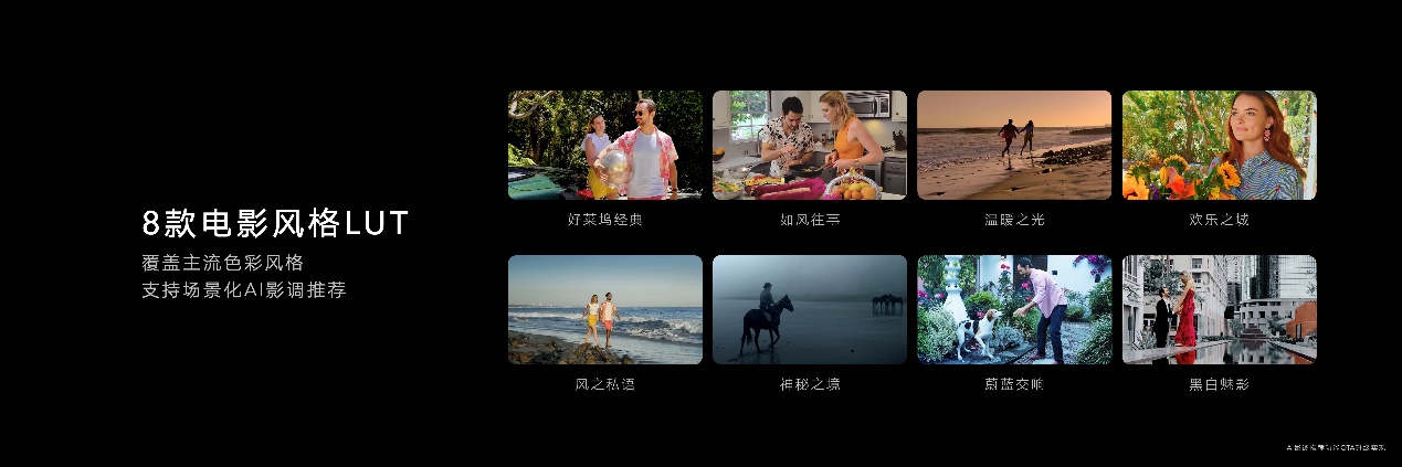 結(jié)合榮耀 AI影像技術(shù),榮耀Magic3系列推出 AI影調(diào)推薦功能(此功能后續(xù)通過 OTA升級支持),識別場景元素,智能匹配并推薦適合風(fēng)格的LUT影調(diào),用戶也可以通過專業(yè)模式下錄制Log視頻,再通過相冊視頻剪輯功能自行添加喜歡的 LUT影調(diào)。榮耀 M agic3系列實(shí)現(xiàn)了電影工業(yè)視頻流程 AI化,使專業(yè)走向大眾,讓用戶隨手便可拍出電影大片,充分表達(dá)自己的情緒與審美。