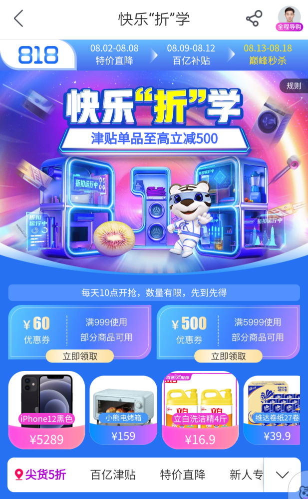 以818大促為例,8月12日至18日期間,“真快樂”以“特價(jià)直降”“百億津貼”和“巔峰秒殺”三重活動(dòng)讓利消費(fèi)者,一重更比一重優(yōu)惠。活動(dòng)福利覆蓋食品酒水、服飾鞋包、家居家裝、日用百貨、母嬰玩具、美妝個(gè)護(hù)、家用電器等全品類品質(zhì)好物。與此同時(shí),消費(fèi)者不僅可以享受“真快樂”提供的折扣優(yōu)惠,還可以通過(guò)國(guó)美“折上折A PP”領(lǐng)券,再次享受優(yōu)惠,實(shí)現(xiàn)折上再折,折上再減。無(wú)需費(fèi)心拼單、湊單,一鍵領(lǐng)取優(yōu)惠券,折扣即可到手。