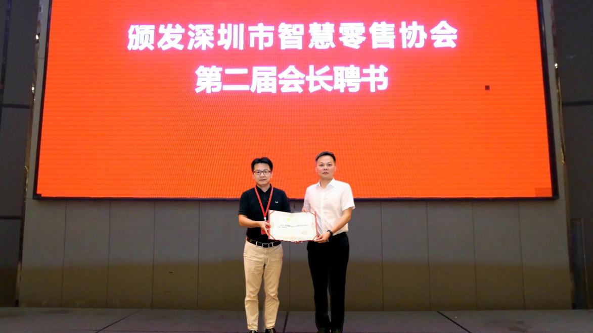 同期,深圳市智慧零售協(xié)會,在此舉行四年一度的換屆選舉大會。經(jīng)過無記名差額投票選舉,天虹數(shù)科商業(yè)股份有限公司董事長高書林連任深圳市智慧零售協(xié)會會長,由深圳市對口支援新疆工作前方指揮部副總指揮、深圳市商務局副局長管耀華為其頒發(fā)聘書。