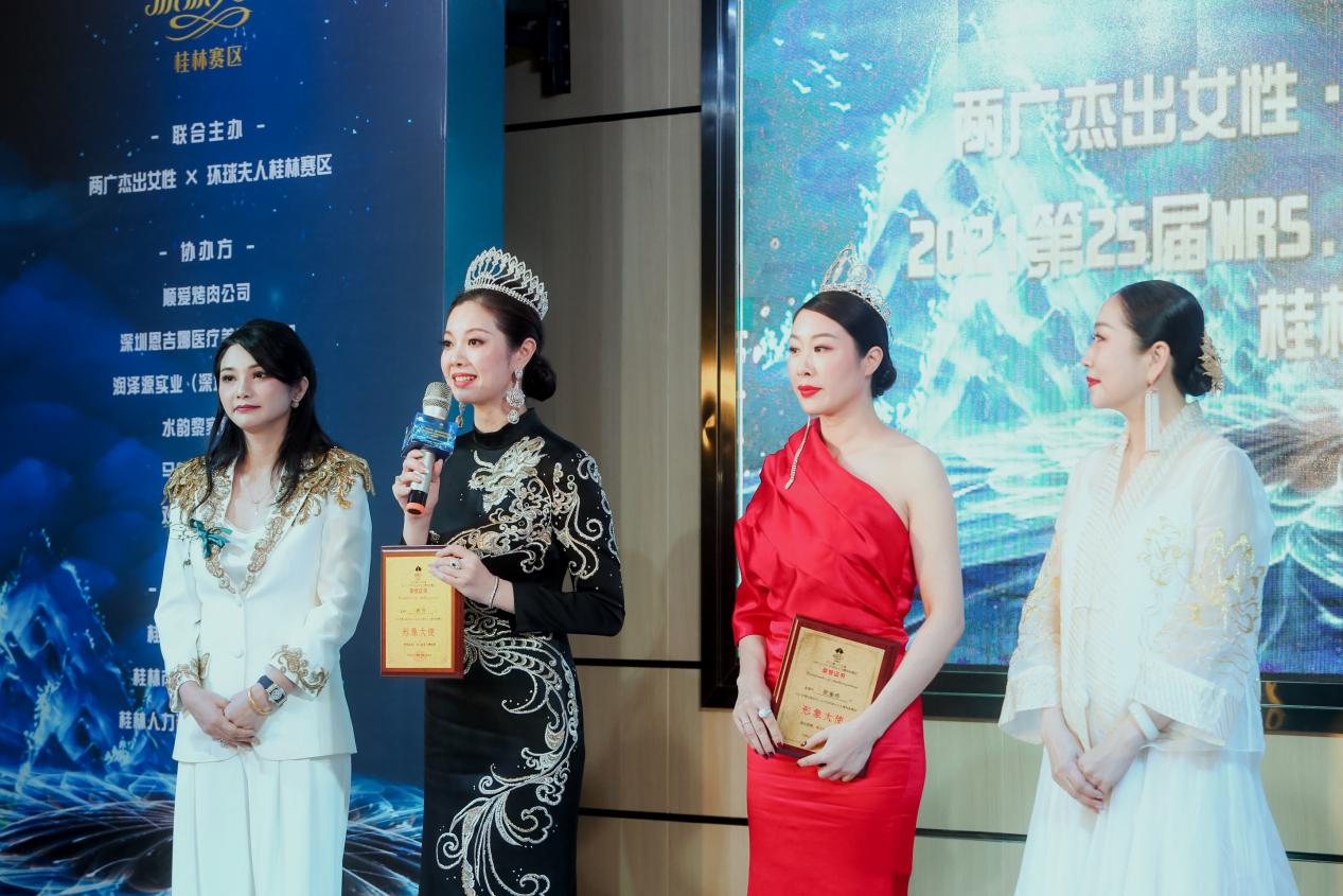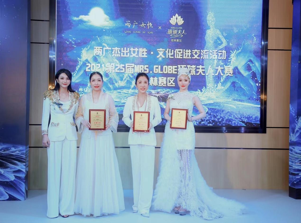 活動現(xiàn)場除了多位嘉賓的熱情致辭分享,同時還舉行了“2021第25屆MRS.GLOBE環(huán)球夫人大賽桂林賽區(qū)組委會成員授牌儀式”。