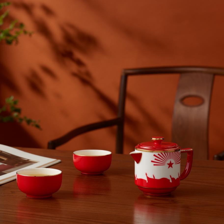 在大會(huì)現(xiàn)場(chǎng),國(guó)瓷永豐源劉權(quán)輝攜與會(huì)領(lǐng)導(dǎo)共同為紅色文創(chuàng)系列新品隆重揭幕。據(jù)了解,這一系列紅色文創(chuàng)產(chǎn)品,已于今年8月正式入駐北京國(guó)家黨史館。