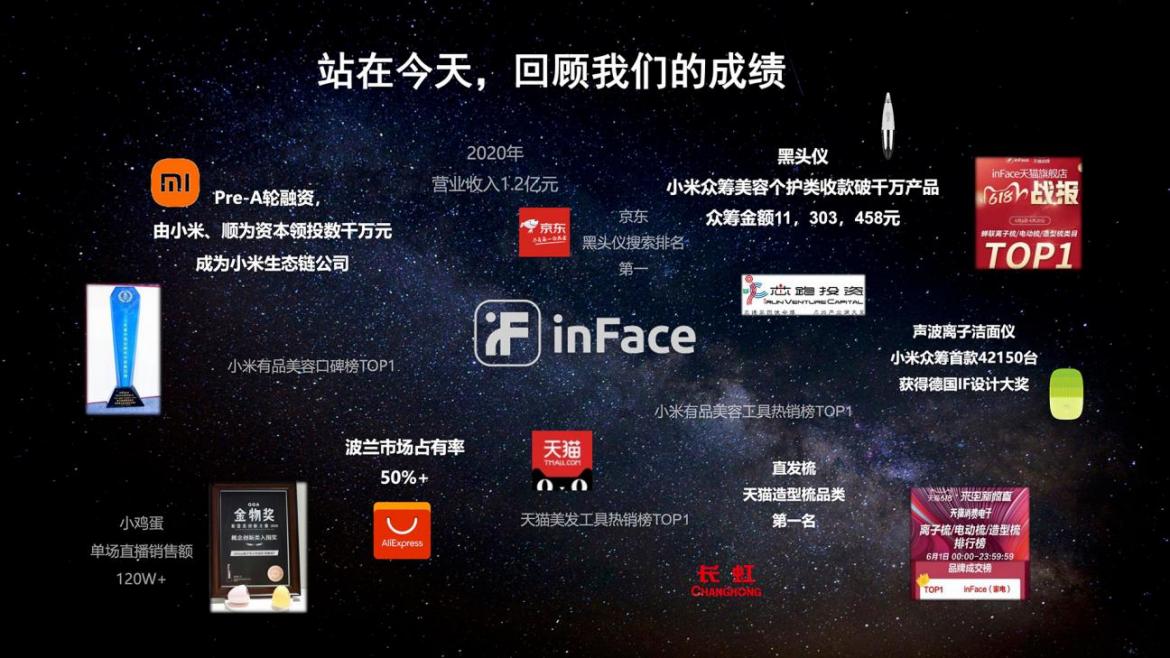 據(jù)了解, inFace創(chuàng)立于2017年6月21日,經(jīng)過近1年籌備,2018-2020年完成了第一個“三年計劃”,即實現(xiàn)成為行業(yè)有代表和開創(chuàng)性“產(chǎn)品型公司”的戰(zhàn)略目標(biāo)。在這期間,inFace發(fā)布原創(chuàng)產(chǎn)品12款+,年營收超1億元,同時完成由小米集團(tuán)、順為資本領(lǐng)投的數(shù)千萬元Pre-A輪融資,正式加入小米生態(tài)鏈。在小米有品、天貓和京東等國內(nèi)主流電商平臺上,核心類目例如潔面儀、黑頭儀、直發(fā)梳、美膚儀和美容儀等產(chǎn)品,inFace都是TOP級商家。