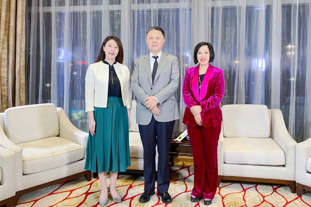 蘇州金合盛控股有限公司黨委書記、副董事長、總經(jīng)理周瓊芳(左一);深圳市金融商會產(chǎn)業(yè)戰(zhàn)略顧問、深圳市共享金融研究院執(zhí)行院長(中);深圳市金融商會執(zhí)行會長朱雪櫻(右一)