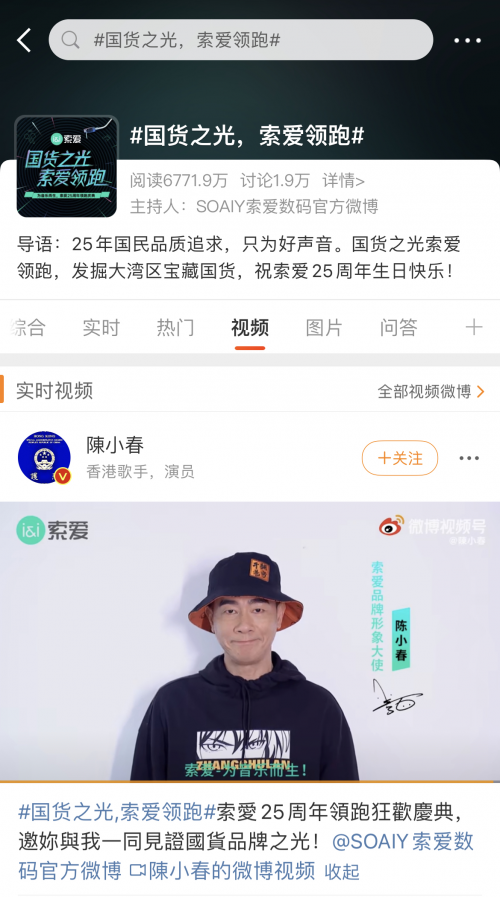 讀特客戶端·深圳新聞網(wǎng)2021年10月22日訊(記者 田志強)近日,索愛廣州25周年慶領(lǐng)跑活動在網(wǎng)絡(luò)持續(xù)發(fā)酵,引爆輿論熱烈關(guān)注。作為音頻數(shù)碼行業(yè)首個登錄廣州塔的國貨品牌,索愛25周年領(lǐng)跑活動吸引了大量的媒體和達人齊聚廣州塔,索愛品牌和產(chǎn)品熱度以廣州為中心迅速向周邊地域傳播。在索愛冠名高鐵、簽約陳小春夫婦為品牌形象大使等品牌事件的疊加聚合效應(yīng)下,#國貨之光,索愛領(lǐng)跑#等話題和熱度持續(xù)傳播至各社交平臺,各個類別KOL相繼為索愛發(fā)聲,僅在微博平臺的話題閱讀量已突破數(shù)千萬。