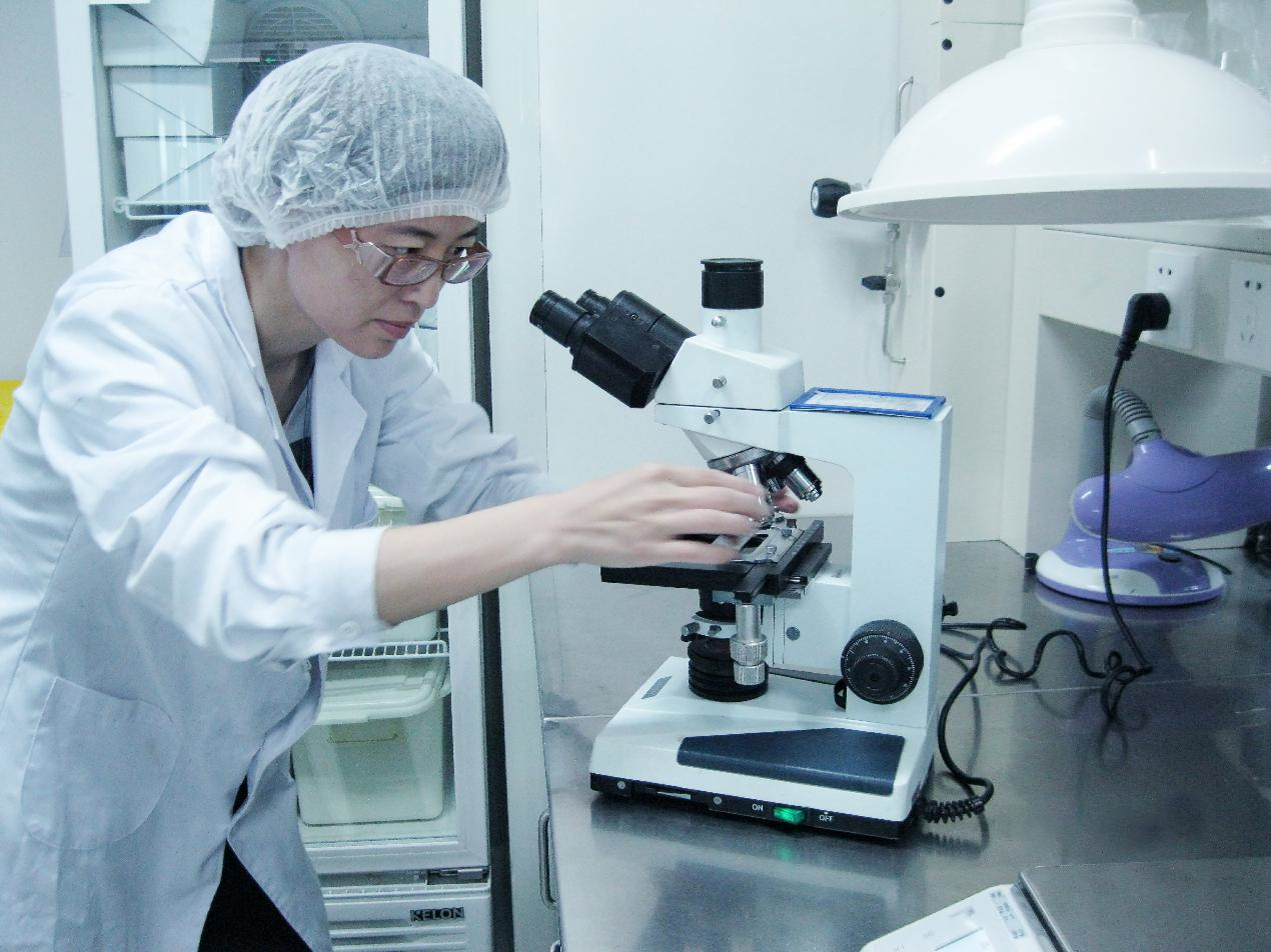 伊利質(zhì)檢人孟根花在進(jìn)行產(chǎn)品微生物檢測
