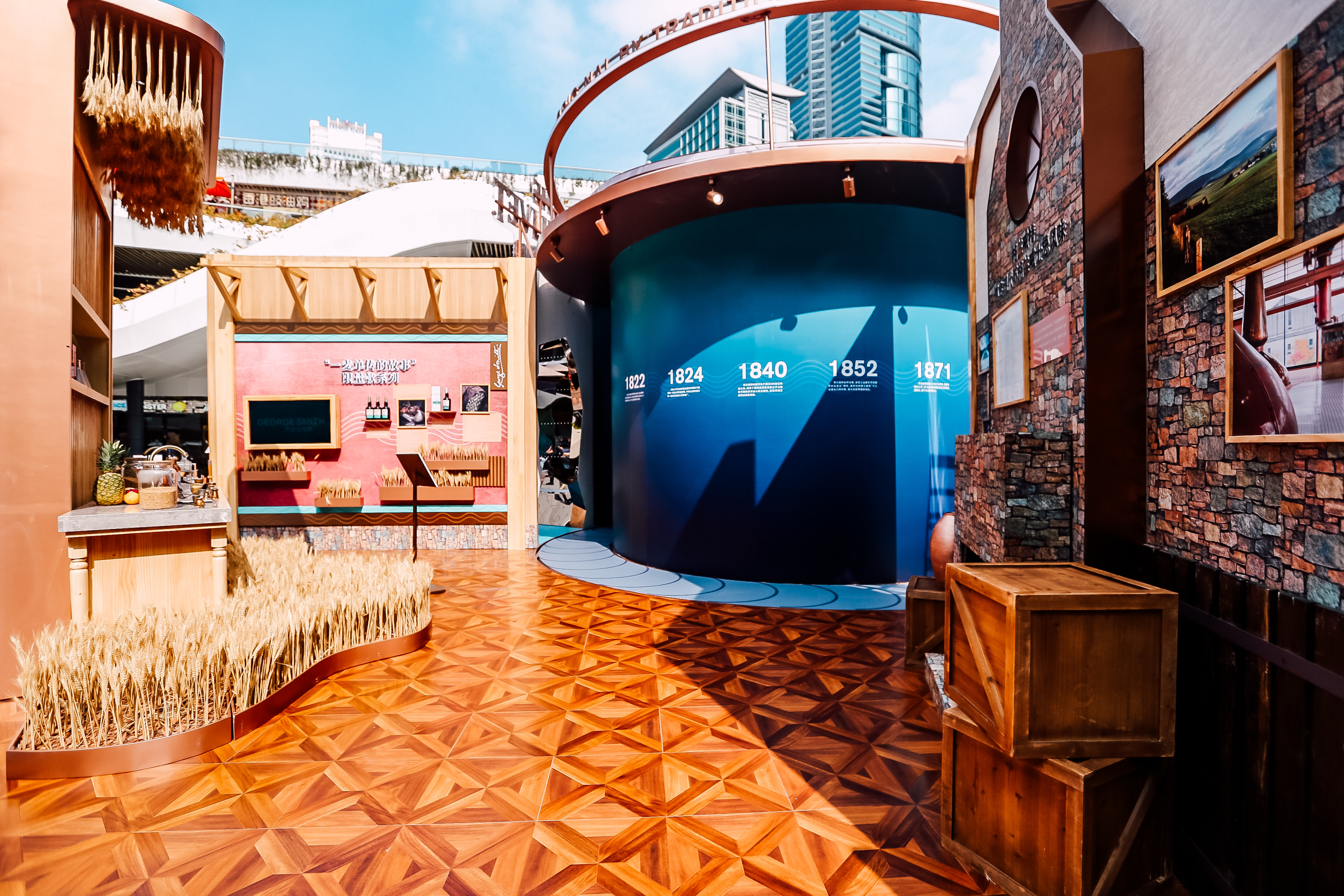 創(chuàng)造不止步,格蘭威特不斷尋求產(chǎn)品革新,創(chuàng)造了以花果芬芳和馥郁口感為特色的諸多單一麥芽威士忌佳釀。步入時(shí)光穿梭酒廠的“傳承與創(chuàng)造”空間,花果芳香綻放,充滿自然氣息的環(huán)境中呈現(xiàn)了格蘭威特豐富的產(chǎn)品組合以及其獨(dú)特的優(yōu)雅細(xì)致風(fēng)格??臻g一側(cè)重點(diǎn)展示了品牌的經(jīng)典之作——格蘭威特18年,作為醇厚均衡的單一麥芽威士忌佳釀,它是歲月與優(yōu)雅的詮釋,芳醇柔滑,酒體均衡。此外,另一款全新威士忌臻品——格蘭威特14年干邑桶陳釀也在空間另一側(cè)隆重展出。歷經(jīng)美國(guó)威士忌桶與雪莉桶至少14年的陳年之后,精選部分酒液換桶陳年于高品質(zhì)法國(guó)干邑橡木桶,格蘭威特14年干邑桶陳釀?chuàng)碛酗枬M且濃郁的甜美風(fēng)味,并創(chuàng)新地將白蘭地香氣與品牌標(biāo)志性的優(yōu)雅細(xì)致花果香融為一體,加上瓶身奪目的紫色設(shè)計(jì),威士忌愛(ài)好者可以通過(guò)參與現(xiàn)場(chǎng)品鑒挑戰(zhàn)贏取品鑒機(jī)會(huì),解鎖別具一格的風(fēng)味之旅。