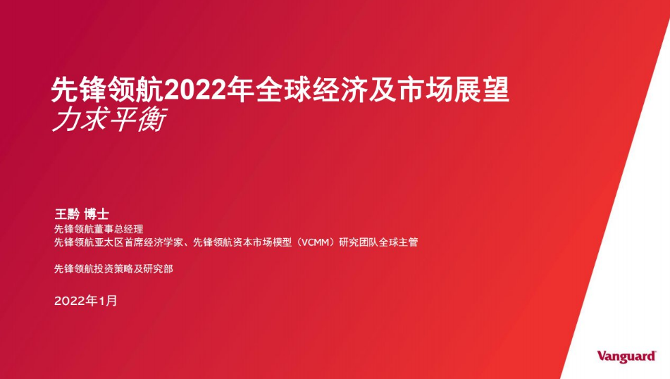 讀特客戶端·深圳新聞網(wǎng)2022年1月26日訊(記者 張俊達(dá))近日, Vanguard先鋒領(lǐng)航于萬得平臺(tái)舉行線上交流會(huì),正式發(fā)布《先鋒領(lǐng)航2022年全球經(jīng)濟(jì)及市場展望:力求平衡》。會(huì)上,先鋒領(lǐng)航投資策略及研究部亞太區(qū)首席經(jīng)濟(jì)學(xué)家、先鋒領(lǐng)航資本市場模型(VCMM)研究團(tuán)隊(duì)全球主管王黔博士就展望報(bào)告進(jìn)行了主題分享并圍繞相關(guān)話題與參會(huì)嘉賓展開了深入探討。