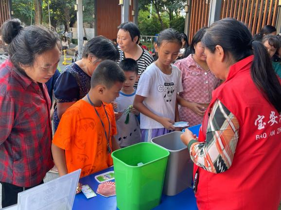 在換享留影區(qū)中,蒲公英講師開啟宣教的熱潮,向居民講解垃圾分類相關(guān)知識(shí),派發(fā)垃圾分類宣傳折頁(yè)和《條例》手冊(cè),引導(dǎo)居民從日常生活中細(xì)微開始,踐行源頭減量行動(dòng)。