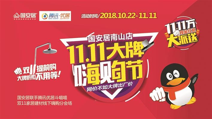 10月22日,“國(guó)安居南山店&騰訊優(yōu)居雙11大牌嗨購(gòu)節(jié)”在國(guó)安居南山店四樓火熱啟動(dòng)!