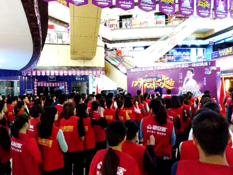 10月22日下午,“國(guó)安居南山店&騰訊優(yōu)居雙11大牌嗨購(gòu)節(jié)”活動(dòng)啟動(dòng)大會(huì)在國(guó)安居南山店四樓隆重舉行。國(guó)安居南山店各品牌商家老板及銷(xiāo)售精英匯聚于此,正式擂響“雙11大促”的出征鼓!